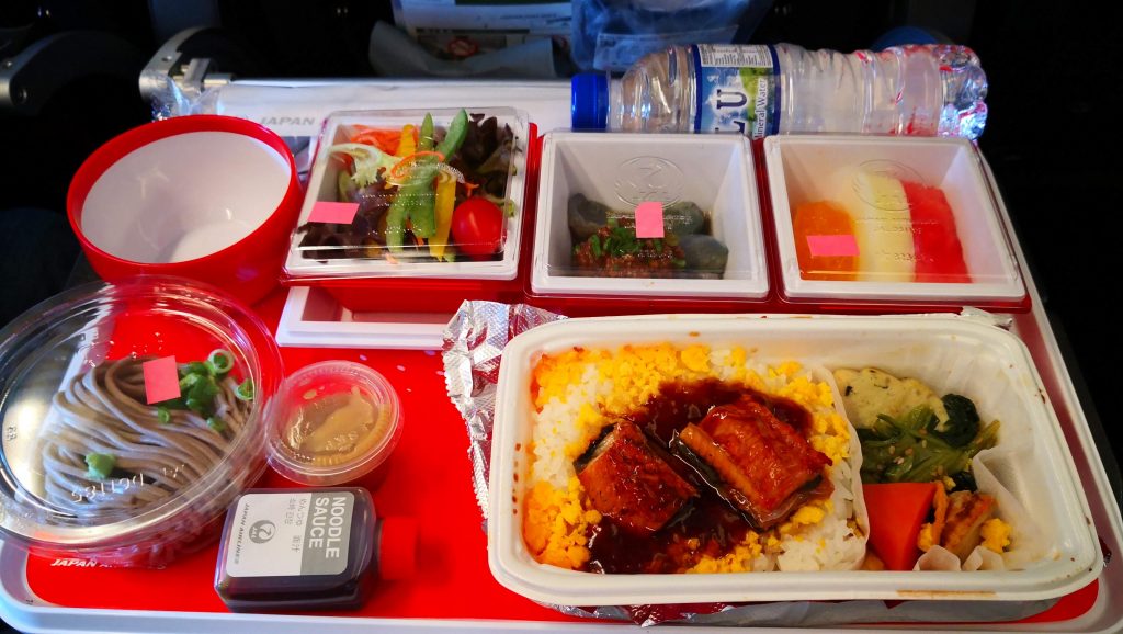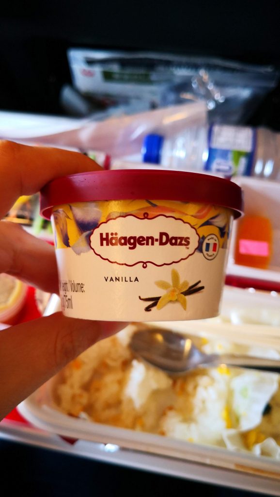 We barely stayed for an hour, before we left the lounge and walked around the transit area where the shops started to open one by one. Before long, we found ourselves boarding the plane. JAL provided rice crackers instead of the usual nuts as snacks, and they were actually pretty good. For lunch, I chose their unagi option and gee, it was one of the best unagi that I’ve ever eaten, for real. Unfortunately it’s just two small pieces….. if only they had more! I finished everything that they served… except for the salad. Oh, and they provide Haagen Daaz ice cream too.