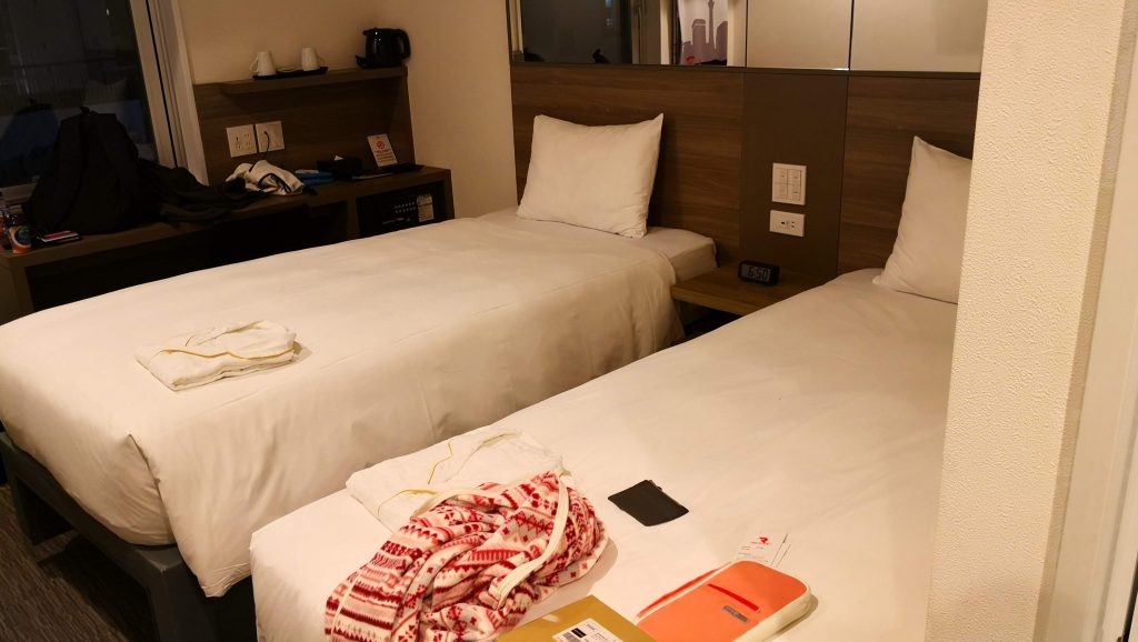 The hotel we stayed this time is Red Planet Tokyo Asakusa, and it was a twin room. It was actually very small, even the shower cubicle is small. So small that I would bump my elbows all the time while lathering myself…