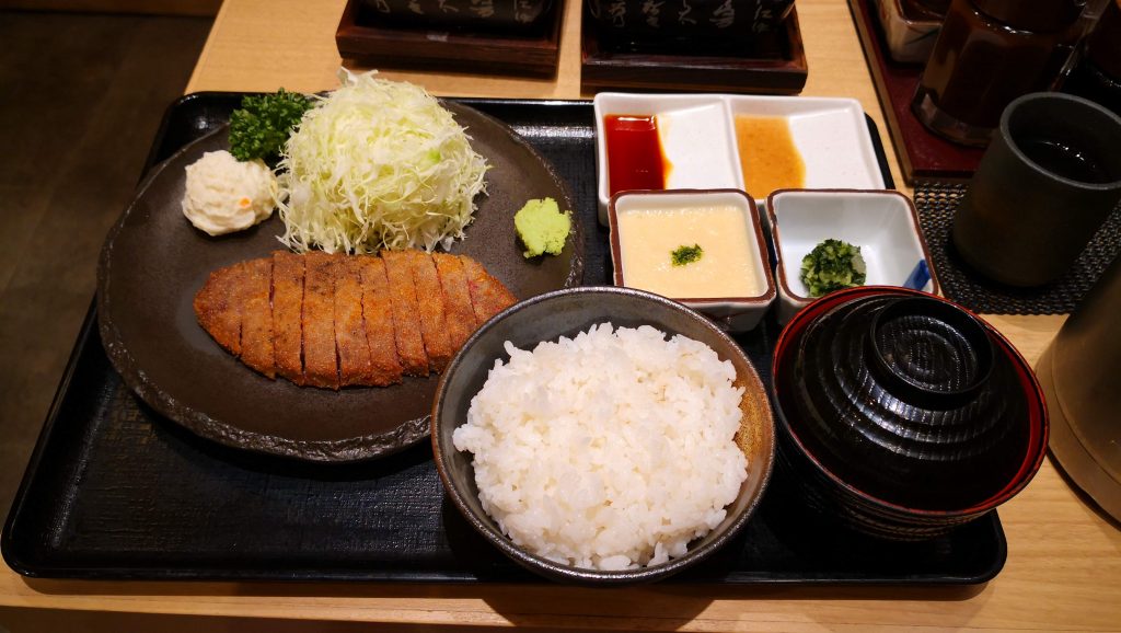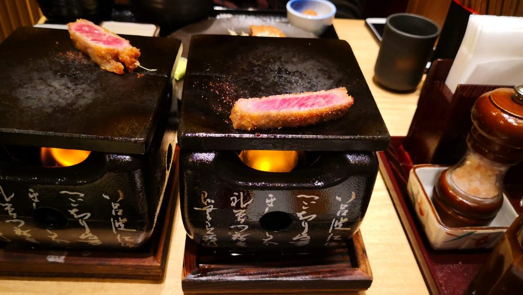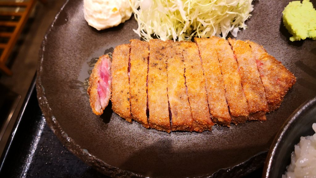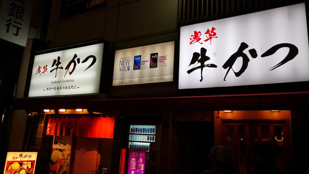 After unpacking the boxes, we then left for dinner, which we already previously decided on Asakusa Gyukatsu, because Bruno missed Gyukatsu very much. The restaurant was pretty near our hotel, so by the time we reached it was about 7pm. There was a pretty long queue ahead of us, but since Bruno insisted on eating this, we queued as well. The queue was almost unmoving, until there’s one whole big bunch of family who left the restaurant after about 20min wait (for us). We managed to get into the restaurant after that.