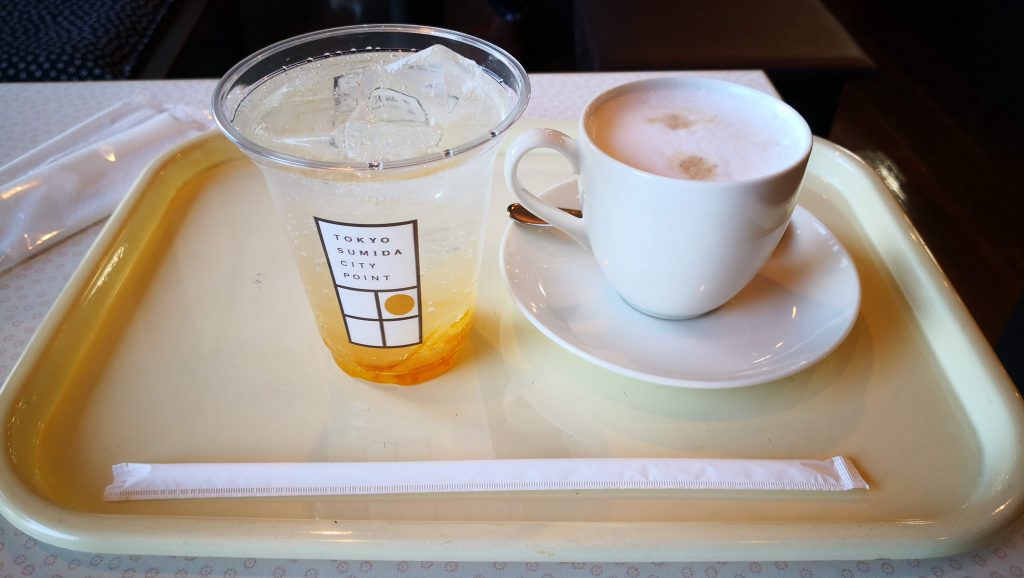 Lunch was a simple affair at the “food court” of Tokyo Solamachi. Tokyo Solamachi on its own was a HUGE shopping mall, but unfortunately it’s so huge that we got lost many times while I was looking for appropriate gifts to get for my nephew and niece. We took a coffee break at Tokyo Sumida City Point cafe (a small, rather unknown cafe within a retail space). I ordered latte (as usual), while Bruno opted for a yuzu soda. I didn’t really like the coffee, but well, coffee is coffee. I think Bruno quite liked his soda though…